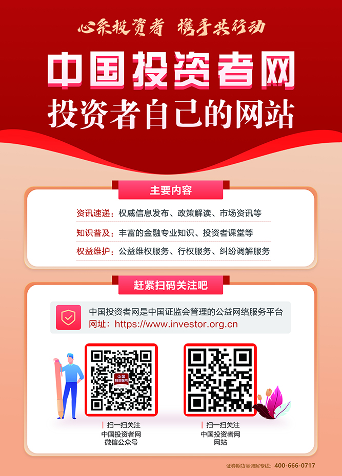 如果大家想了解最權威投資知識、如何維護投資權益、證監會最新資訊等,歡迎大家積極關注“中國投資者網”公眾號和網站。