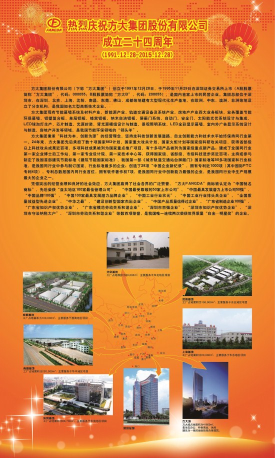 熱烈慶祝方大集團股份有限公司成立二十四周年(1991.12.28-2015.12.28)