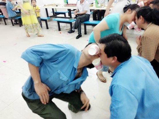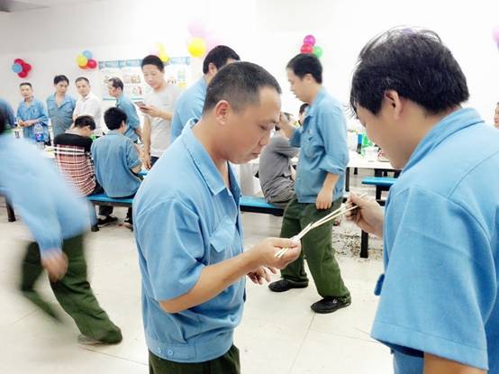 在員工享用美食與水果的同時,當晚現(xiàn)場進行了踩氣球、夾傳瓜子與紙杯傳水三輪游戲,每個游戲都由壽星們自由組隊參與。第一個游戲“踩氣球”,兩人三足需要高度的協(xié)調(diào)與配合,為了躲避對手突襲,壽星們上躥下跳,左右擺動,動作滑稽,惹得全場哄堂大笑;第二個游戲“夾傳瓜子”,大家爭分奪秒往下一位隊友手中輸送瓜子,在輸送的過程中如果瓜子不慎掉落只好重新開始,在圍觀人員的助威吶喊聲中,壽星們加快步伐只為成功夾傳更多的瓜子;最后一個游戲“紙杯傳水”,要求選手們動作謹慎且快,配合度高,為把紙杯的水倒入隊友的紙杯中時能夠滴水不漏,大家的傳輸POSE千奇百怪,笑料百出,現(xiàn)場一片歡聲笑語。