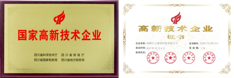 2018年1月,方大集團(tuán)股份有限公司全資子公司成都方大建筑科技有限公司被認(rèn)定為國(guó)家高新技術(shù)企業(yè)。