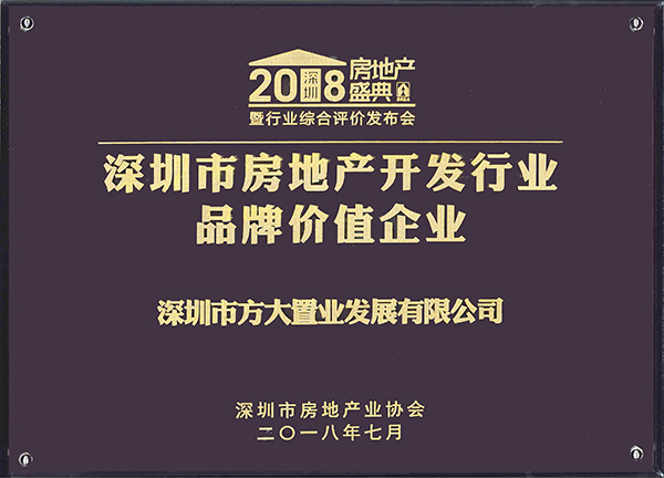 7月10日,第八屆深圳房地產盛典暨行業綜合評價發布會舉行,公布了2018綜合評價結果,方大置業公司獲評“深圳市房地產開發行業品牌價值企業”。
